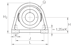 | 铸铁轴承座,内圈带平头螺钉的外球面球轴承,P 型密封 |